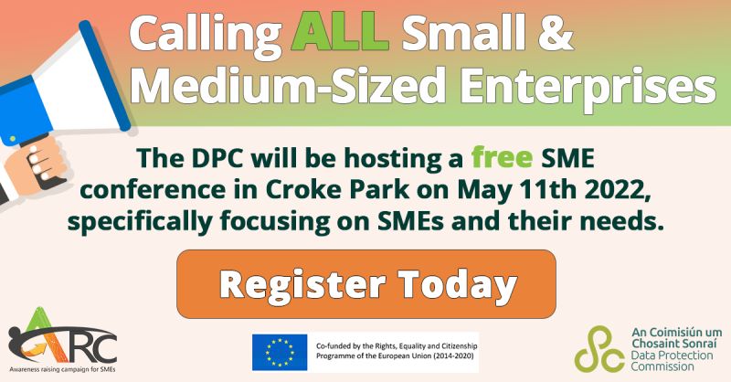 SMEs can register for this free event on May 11th in Croke Park by emailing DPONetwork@dataprotection.ie, with the subject line “ARC Conference Registration” and include their name and the name of their business or organisation.
