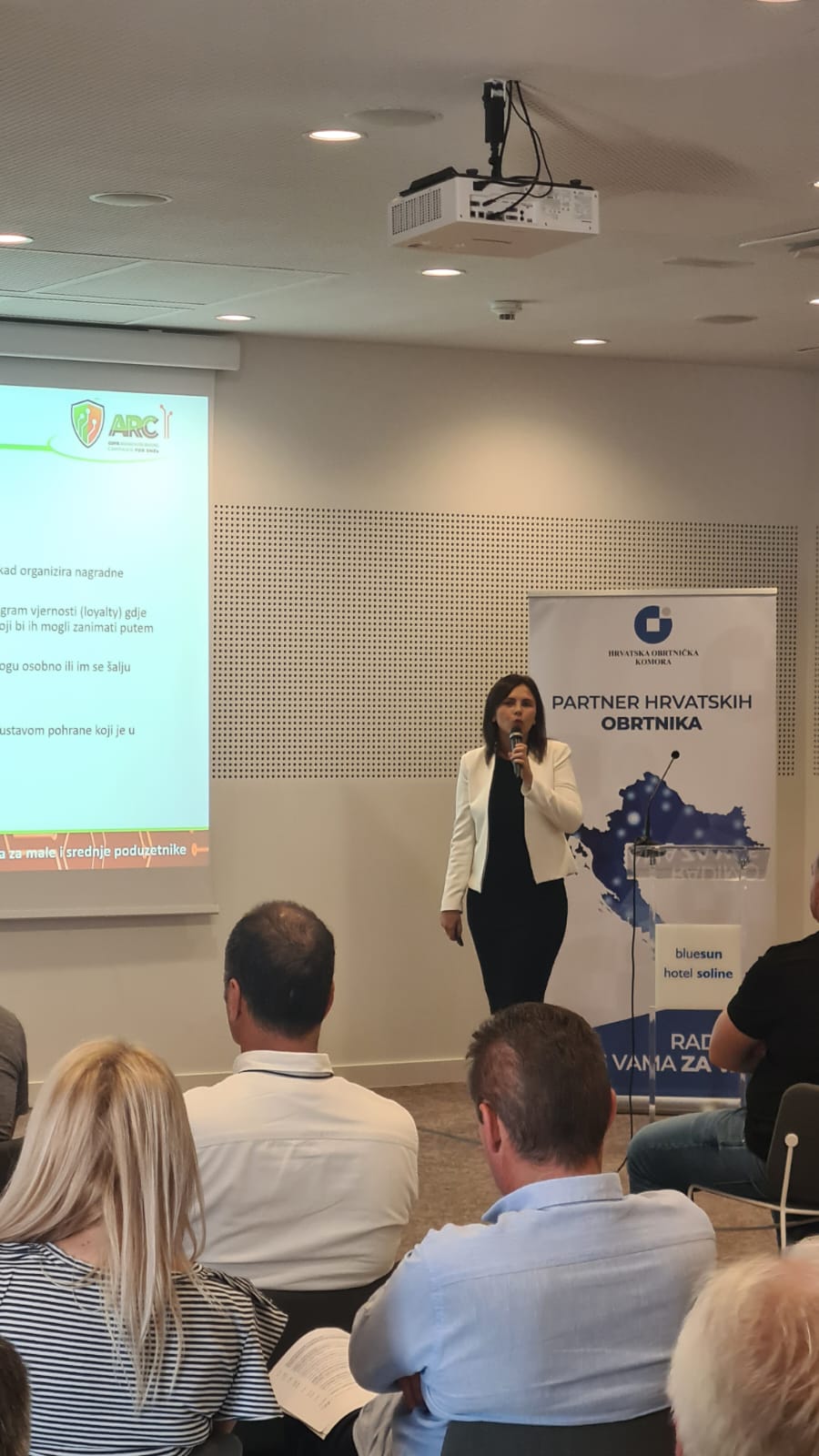 Dana 6.10. 2023. Iva Katić, voditeljica Službe za pravno savjetovanje, suradnju i projekte i GDPR trenerica u ARC2 projektu održala je radionicu “Osnovne obveze iz Opće uredbe o zaštiti podataka- najčešće pogreške i rješenja” na Zajedničkom kolegiju predsjednika i tajnika područnih obrtničkih komora i udruženja obrtnika u Brelima.